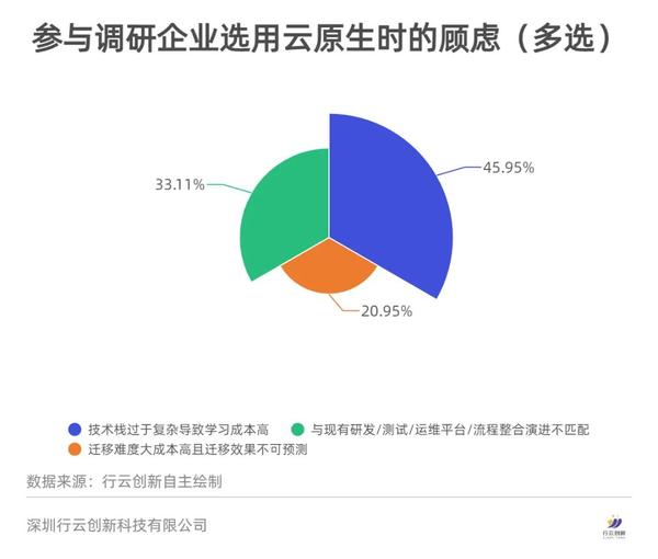 参与调研的企业中,有53%的企业是来自互联网及信息技术行业,可见互联网厂商成为当之无愧的云原生技术应用排头兵。