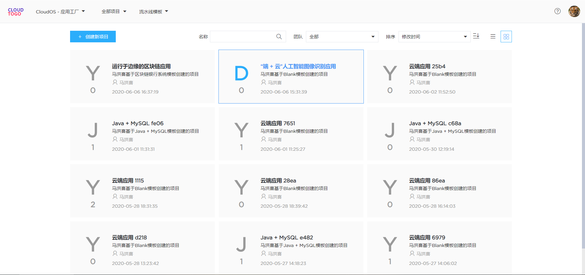 1. 开发支撑模块,可以基于“项目”开发各类云侧、端侧或是混合态应用