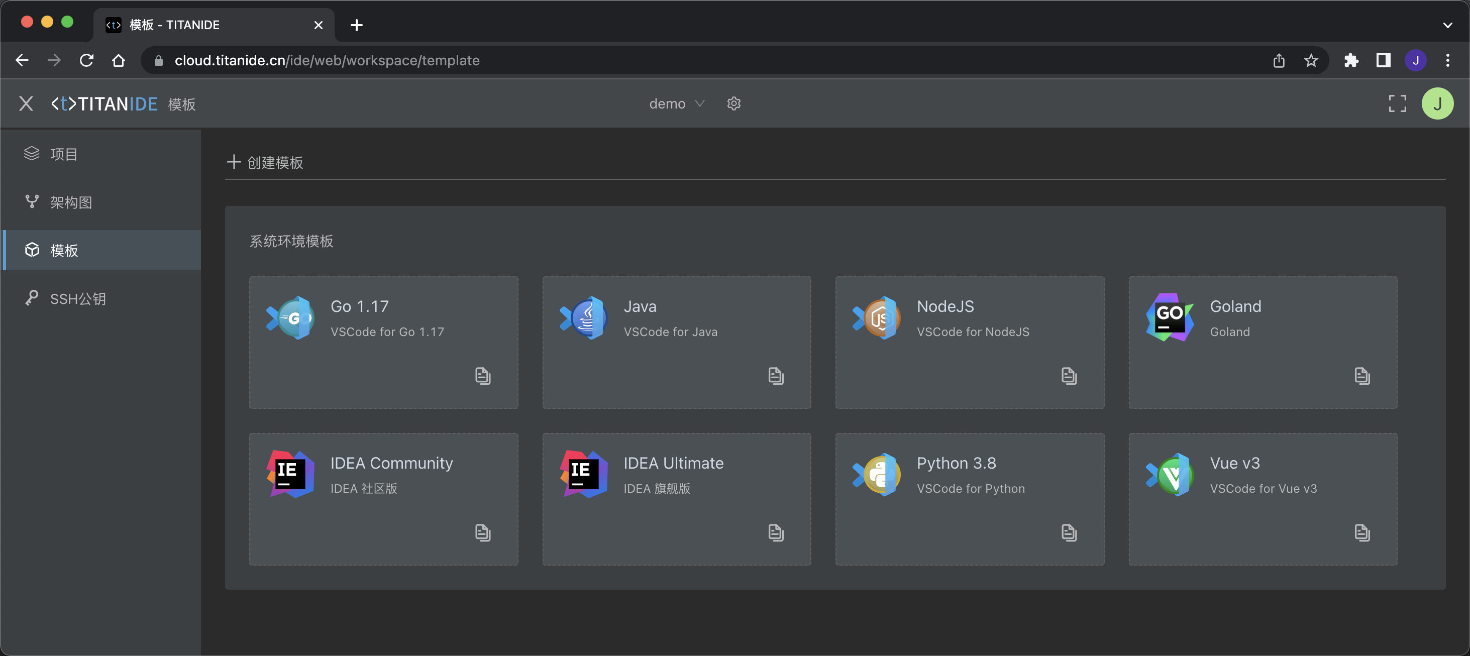 [TitanIDE] 是采用 B/S 架构设计的云原生集成开发环境,内置了业界主流的IDE,让您能够更快速的启动一个您所熟悉的 IDE,不管您以前是使用 VSCode、WebStorm、Intellij IDEA、Goland、Pycharm,总有一款适合您。您无需搭建开发环境,不管在任何地方,任何时间,任何一台电脑,都可以实现代码编写和调试,只需要打开浏览器就能编写并运行、调试您的项目代码,从而聚焦您业务逻辑开发。在企业推进云原生的大背景下,企业面临来自安全、效率、协调等几方面的挑战, [TitanIDE] 就是为了解决这些问题而打造的。