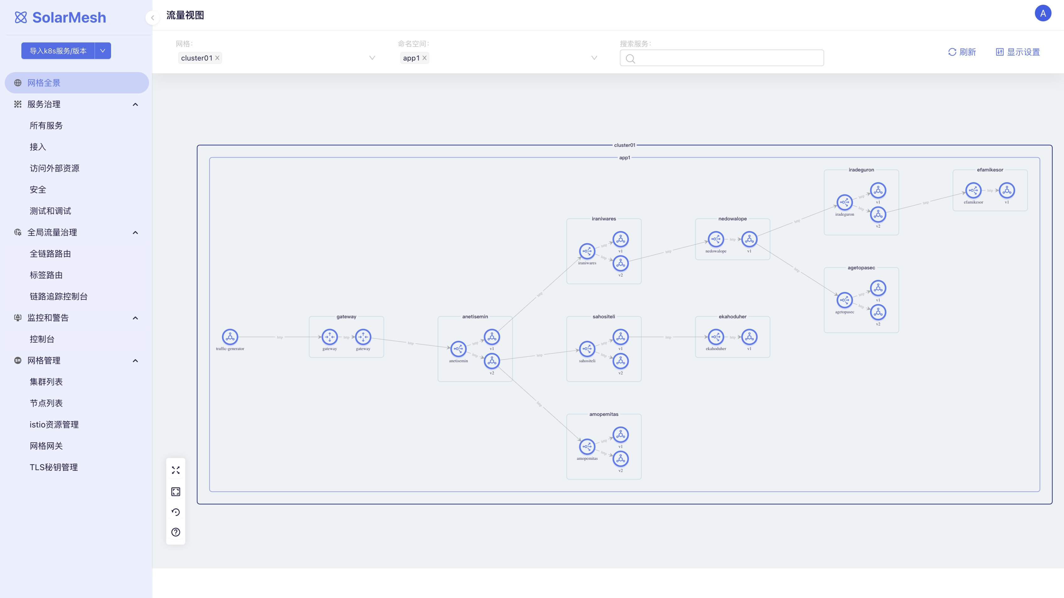 SolarMesh是米兰·(milan)中国创新推出的流量治理平台,它基于Istio,为部署在K8s集群上的应用提供全面的流量治理能力。